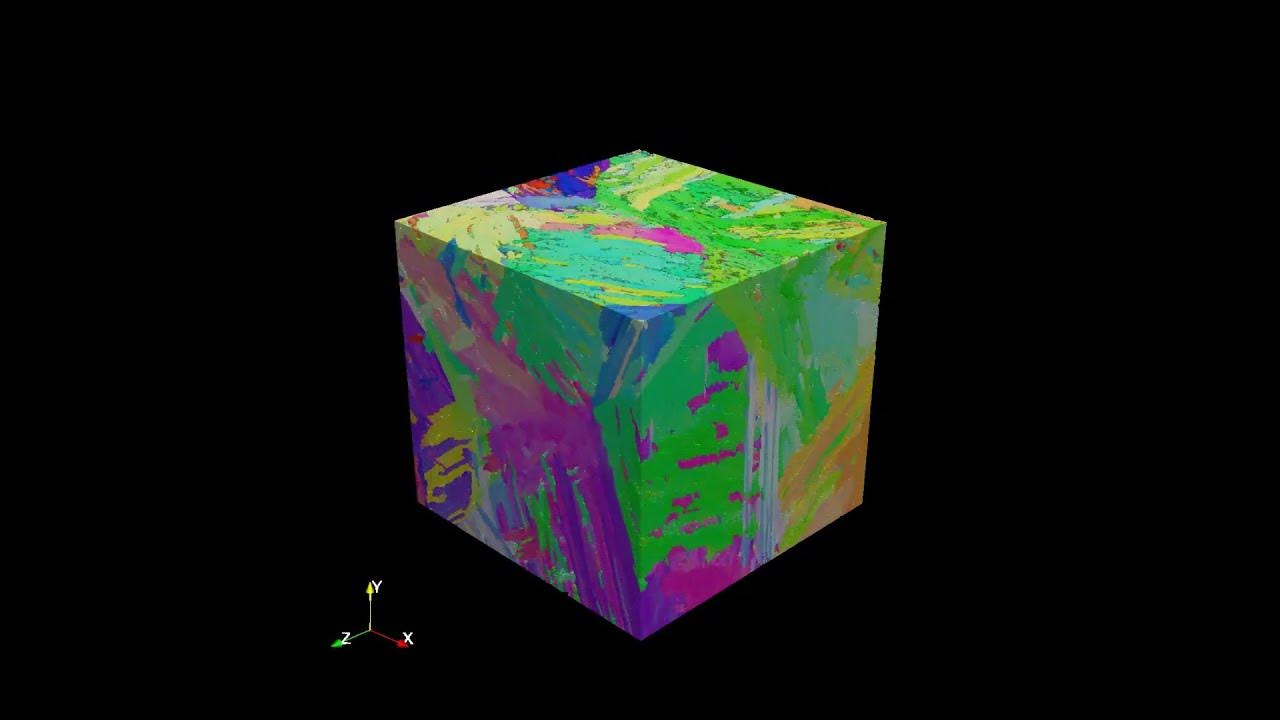 3D Electron Backscatter Diffraction Micrograph of Steel (IPF-Z colouring, cubic) collected by Dr Ruth Birch @ UBC (advised by Dr Ben Britton and Dr Warren Poole).